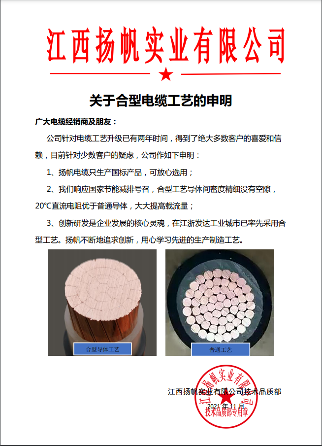 合型電纜工藝申明